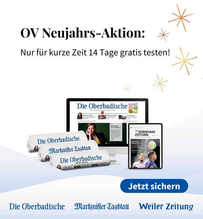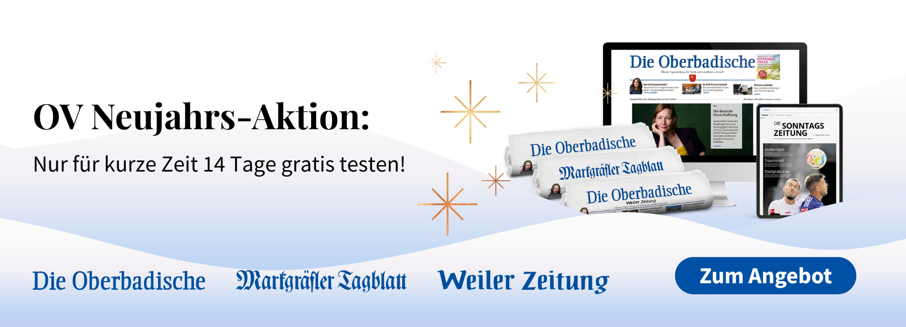 Werben Sie jetzt Freunde und Bekannte für ein Abonnement der Oberbadischen. Als Dankeschön erhalten Sie eine Prämie Ihrer Wahl im Wert von bis zu 100 €.